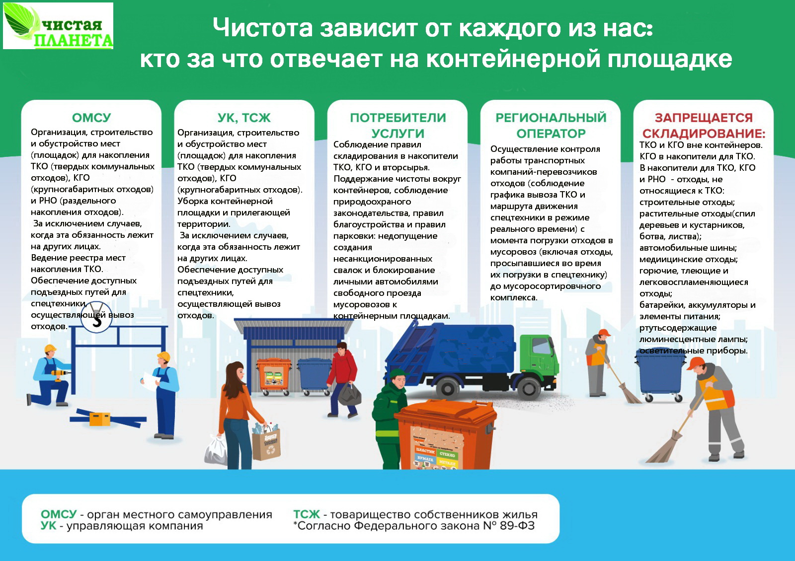 Главная » Новости » Кто за что отвечает на контейнерных площадках ТКО в Брянской области Кто за что отвечает на контейнерных площадках ТКО в Брянской области Брянский региональный оператор АО «Чистая планета» разъясняет.